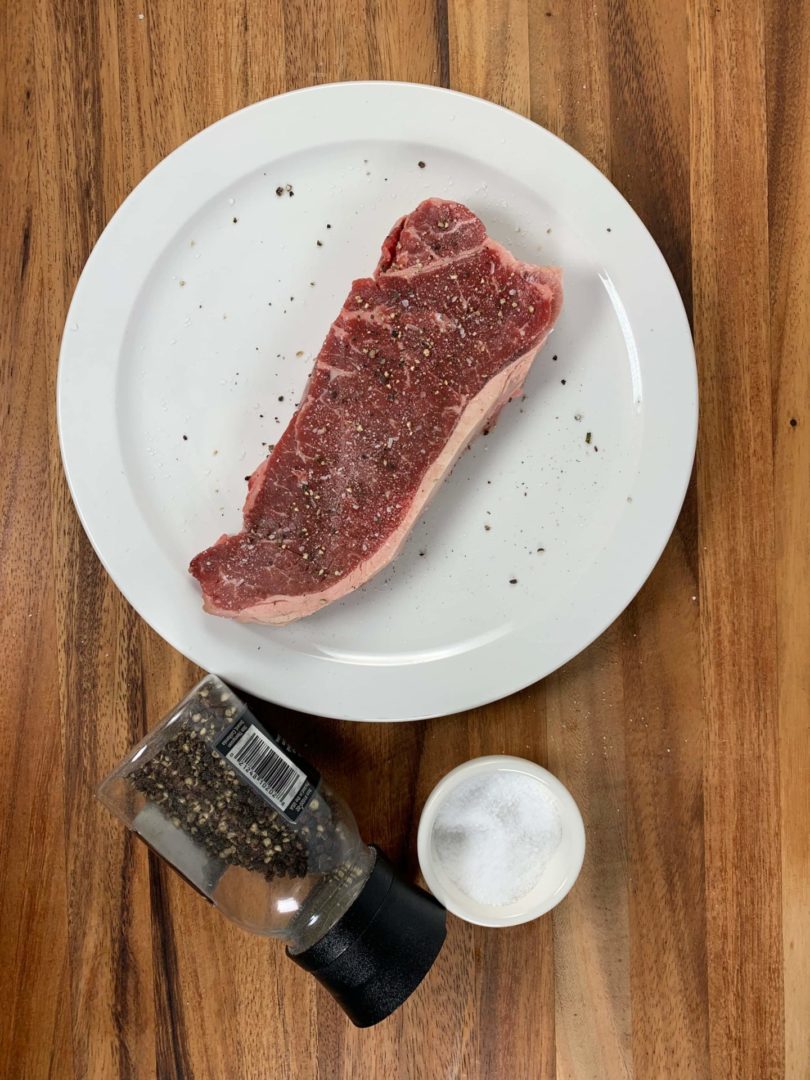 Season your steak with salt and pepper. (or your favorite seasoning blend)