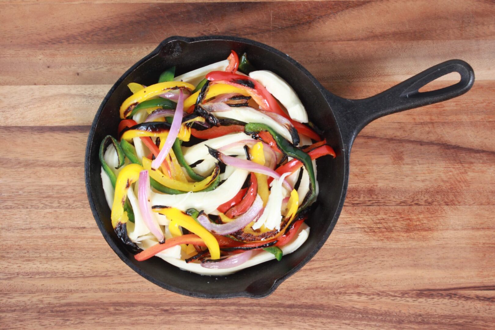 In a large skillet, add Oaxaca cheese and PuraVida Fajita Rajas.