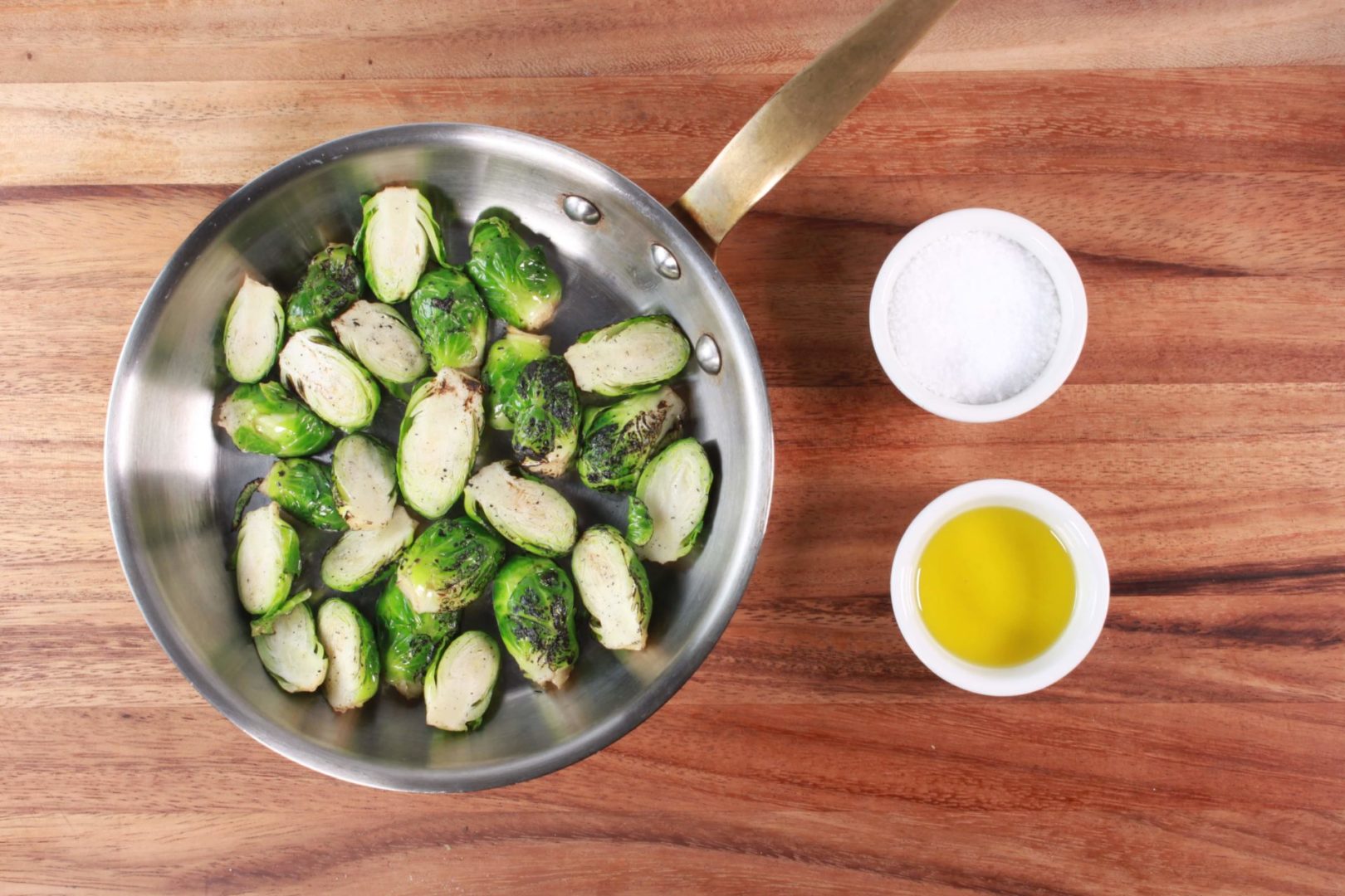 Heat the PuraVida Fire Roasted Brussels sprouts in a pan over medium heat for 3-4 minutes or until hot throughout.