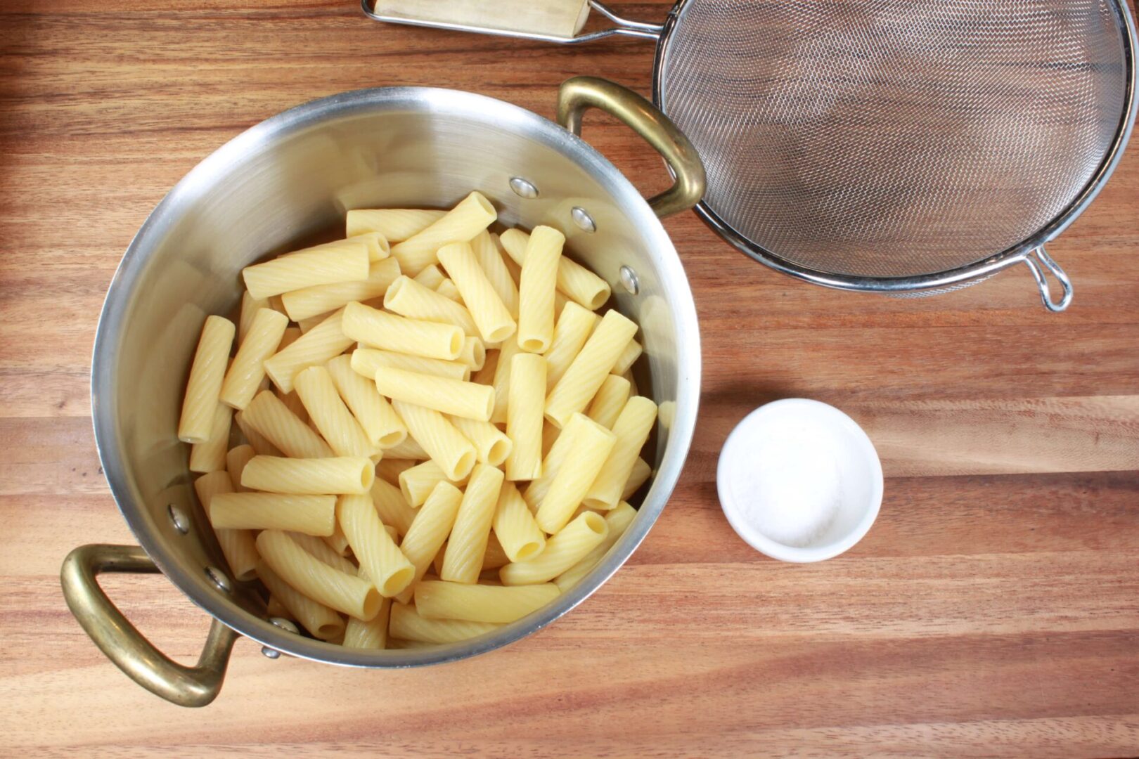 Bring a large pot of salted water to a boil, and cook rigatoni according to package directions